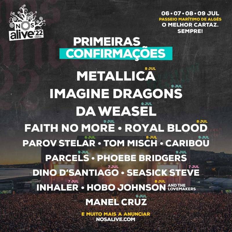 NOS Alive Music Festival will be held in 6-9 July 2022 at Lisbon.